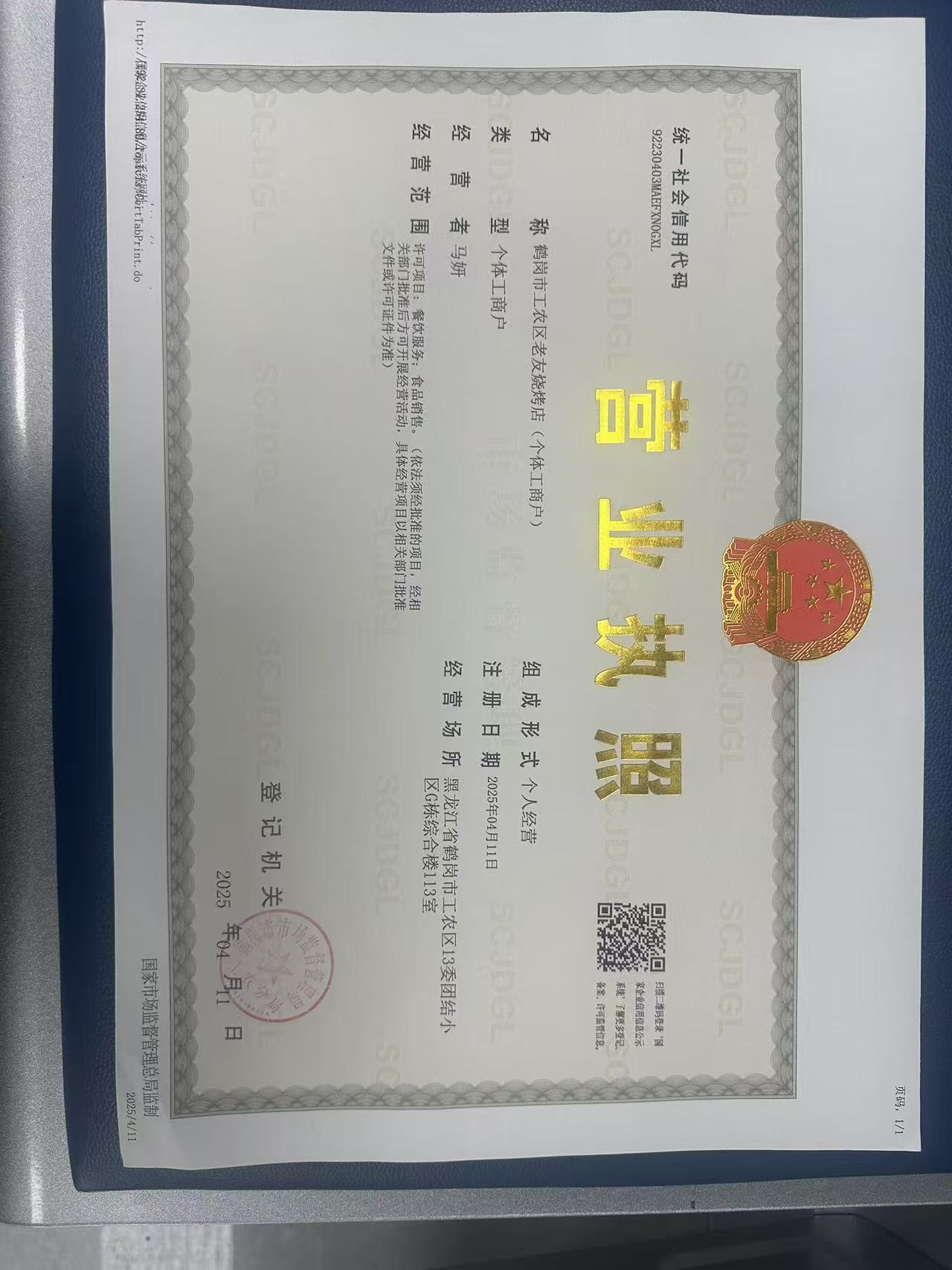 鹤岗市工农区老友烧烤店(个体工商户)