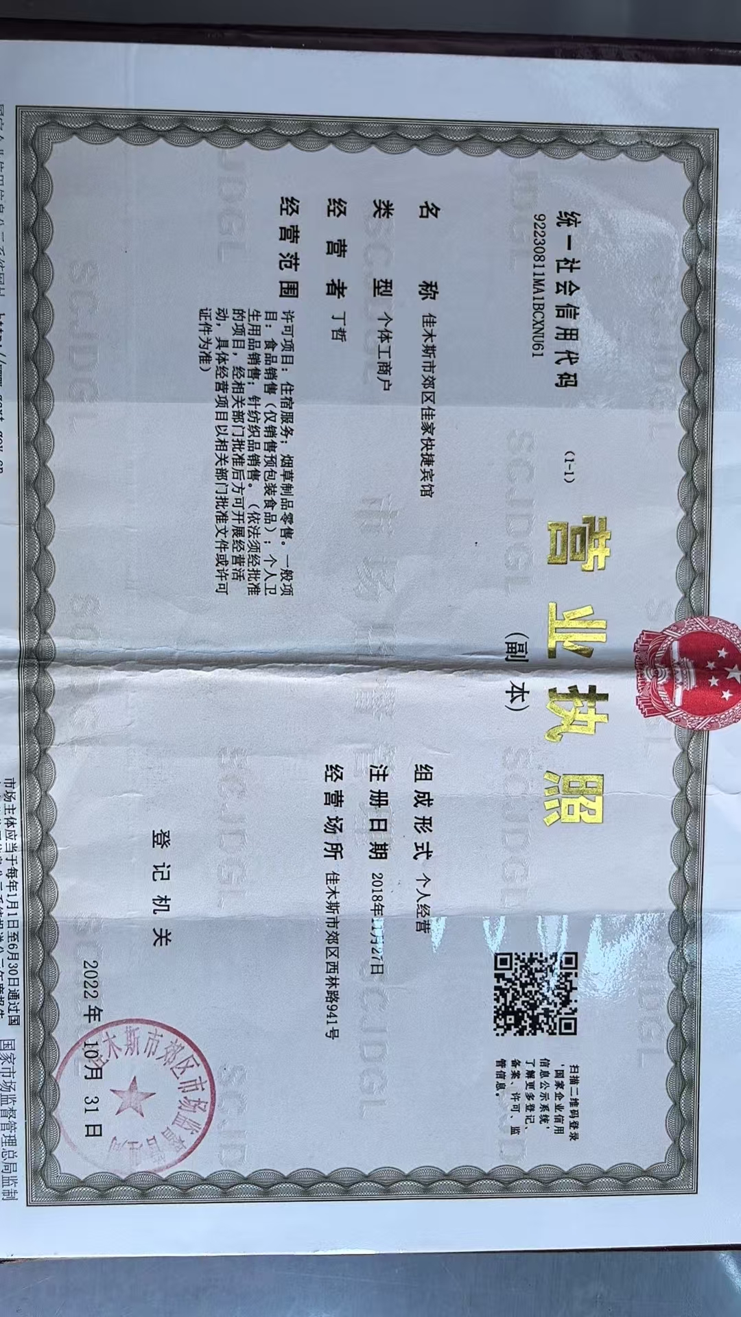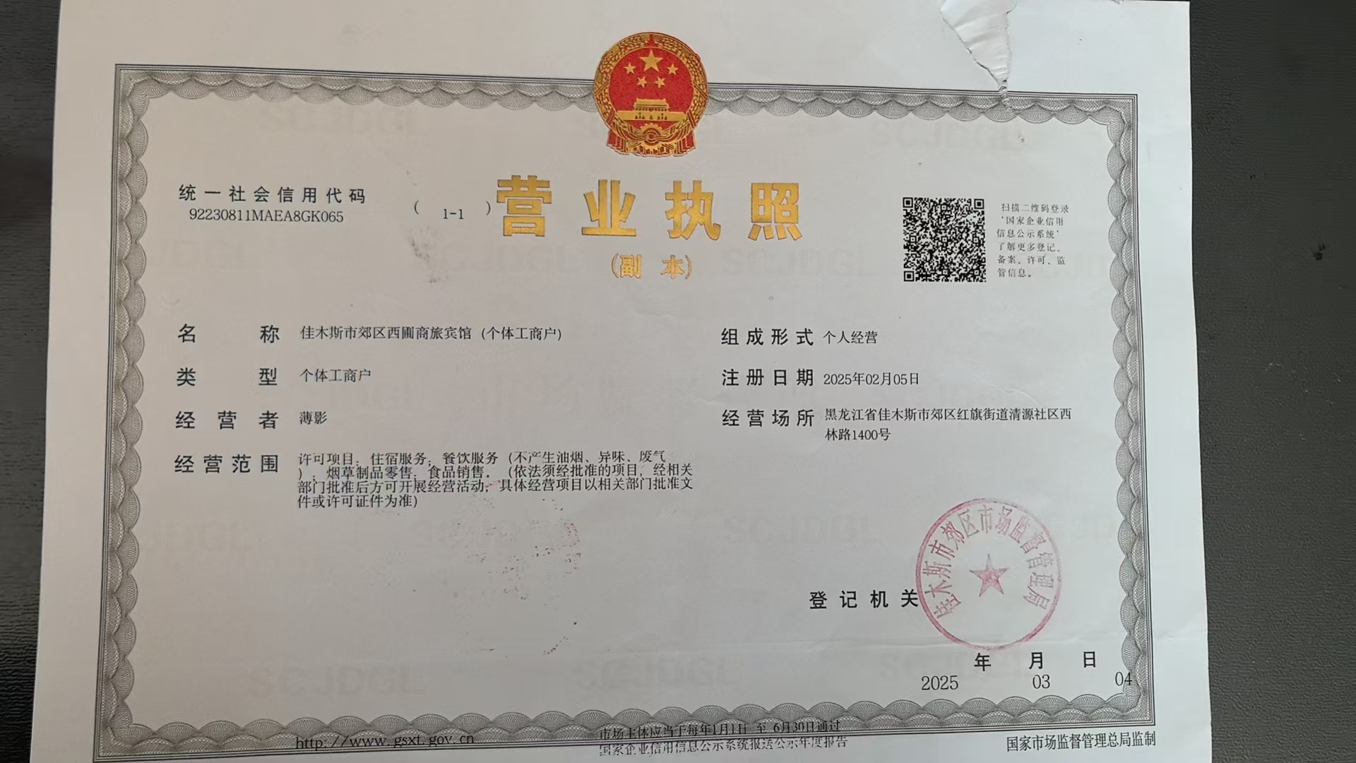 佳木斯市郊区西圃商旅宾馆(个体工商户)