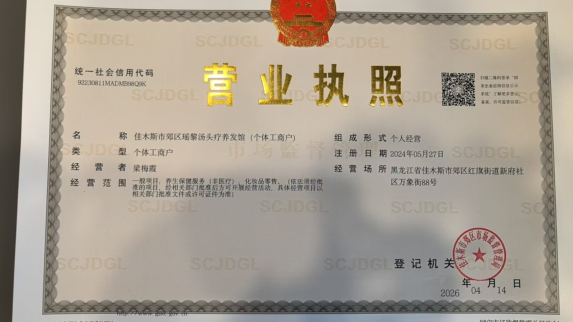 佳木斯市郊区瑶黎汤头疗养发馆(个体工商户)
